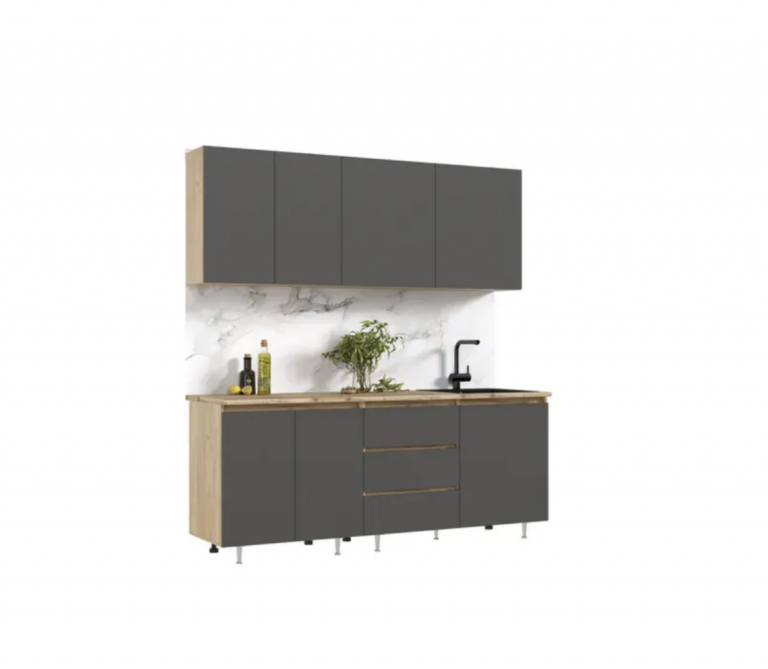 Мебель для кухни Челси — стильное и функциональное решение для вашей кухни. Эта современная кухня сочетает в себе элегантность графита и теплую нотку дуба крафт, создавая уютную атмосферу в вашем доме. Благодаря длине 2 метра, кухонное пространство максимально эффективно использовано для хранения и приготовления пищи. Модульный дизайн позволяет легко дополнить и адаптировать кухню под ваши потребности. Стильный внешний вид с глянцевыми поверхностями Удобные системы хранения Долговечные материалы и современное исполнение Идеально подходит для малых и средних кухонь. Столешница 26 мм, глубина 60 см. Столешница состоит из 2-х частей - 1.2 м и 0.8м. Цвет- дуб вотан. Глубина модулей указана с учетом толщины фасада. Высота нижних модулей указана с учетом столешницы. Цоколь и мойка в комплект не входит!