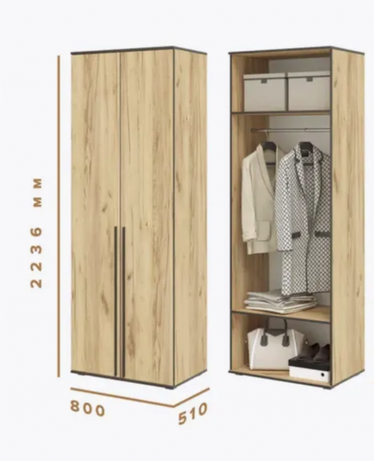 Шкаф для одежды "Норд" — это стильное и функциональное решение для вашего интерьера. Изготовленный из качественных материалов, этот шкаф сочетает в себе современный дизайн и практичность. Шкаф распашной напольный выполнен в скандинавском стиле, который отличается простыми линиями и светлыми оттенками. Элегантные ручки и минималистичные формы придают ему особый шарм. Шкаф изготовлен из высококачественного ЛДСП, что гарантирует долговечность и устойчивость к повреждениям. Поверхность легко очищается и устойчива к воздействию влаги. Идеально подходит для хранения одежды, обуви и аксессуаров.