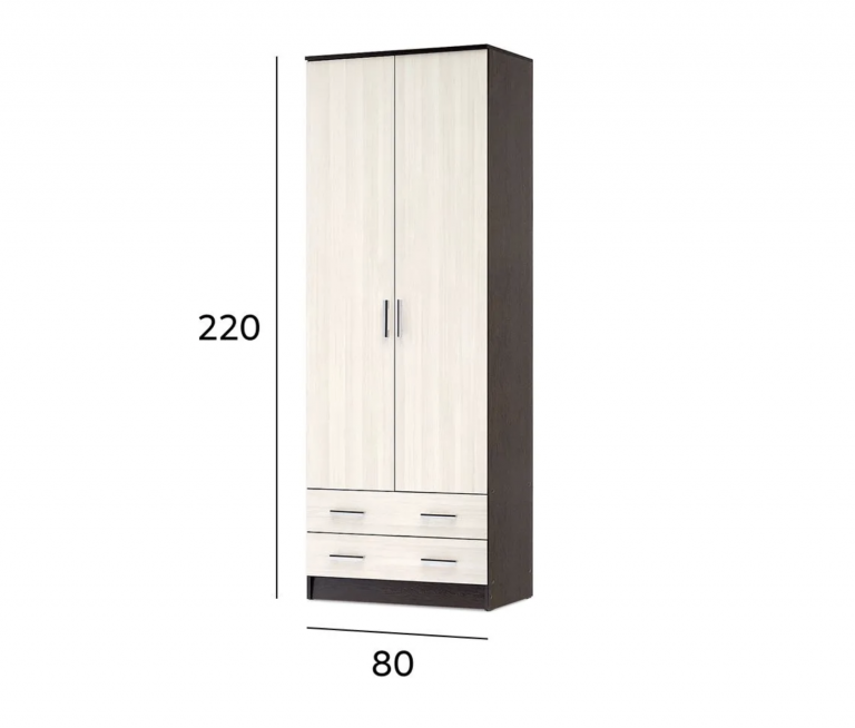 Шкаф Дуэт - это универсальный, компактный и многофункциональный шкаф, который идеально подойдет для хранения вашей одежды и аксессуаров. Оснащен двумя распашными дверями, которые открываются для удобного доступа к внутреннему пространству. В шкафу предусмотрена прочная штанга для развешивания верхней одежды и платьев. Для компактного хранения мелких вещей и аксессуаров предусмотрены два удобных выдвижных ящика. Компактные размеры шкафа позволяют установить его в спальне или гардеробной, максимально эффективно используя пространство. Габариты: Ширина 80 см | Высота 220 см | Глубина 48,7 см