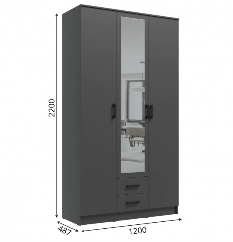 Шкаф Дуэт - это универсальный и многофункциональный шкаф с зеркалом, который идеально подойдет для хранения вашей одежды и аксессуаров. Оснащен тремя распашными дверями, которые открываются для удобного доступа к внутреннему пространству. В шкафу предусмотрена прочная штанга для развешивания верхней одежды и платьев. Для компактного хранения мелких вещей и аксессуаров предусмотрены два удобных выдвижных ящика. Компактные размеры шкафа позволяют установить его в спальне или гардеробной, максимально эффективно используя пространство. Габариты: Ширина 120 см | Высота 220 см | Глубина 48,7 см